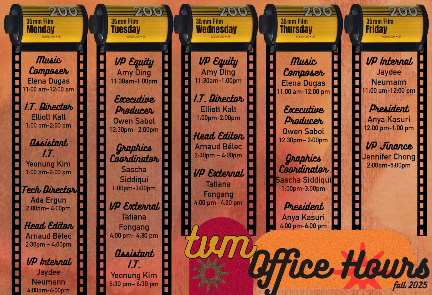 All TVM Admin members hold weekly office hours and they are a free resource for you to drop by to learn how to use equipment and software, ask questions, learn about TVM, or just hang out!